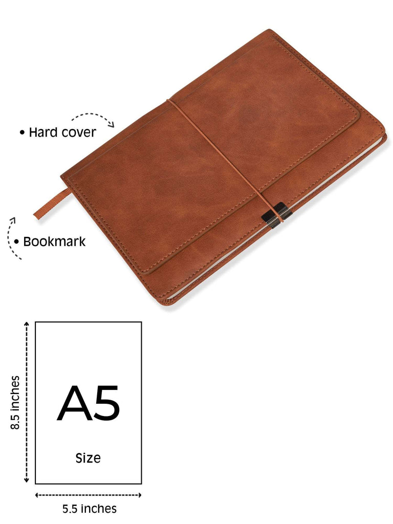 - [ELASTIC BAND WITH METAL HARDWARE] The notebook comes with a coloured elastic band that wraps around horizontally and keeps your diary securely closed. The metal hardware adds a touch of sophistication to the design.