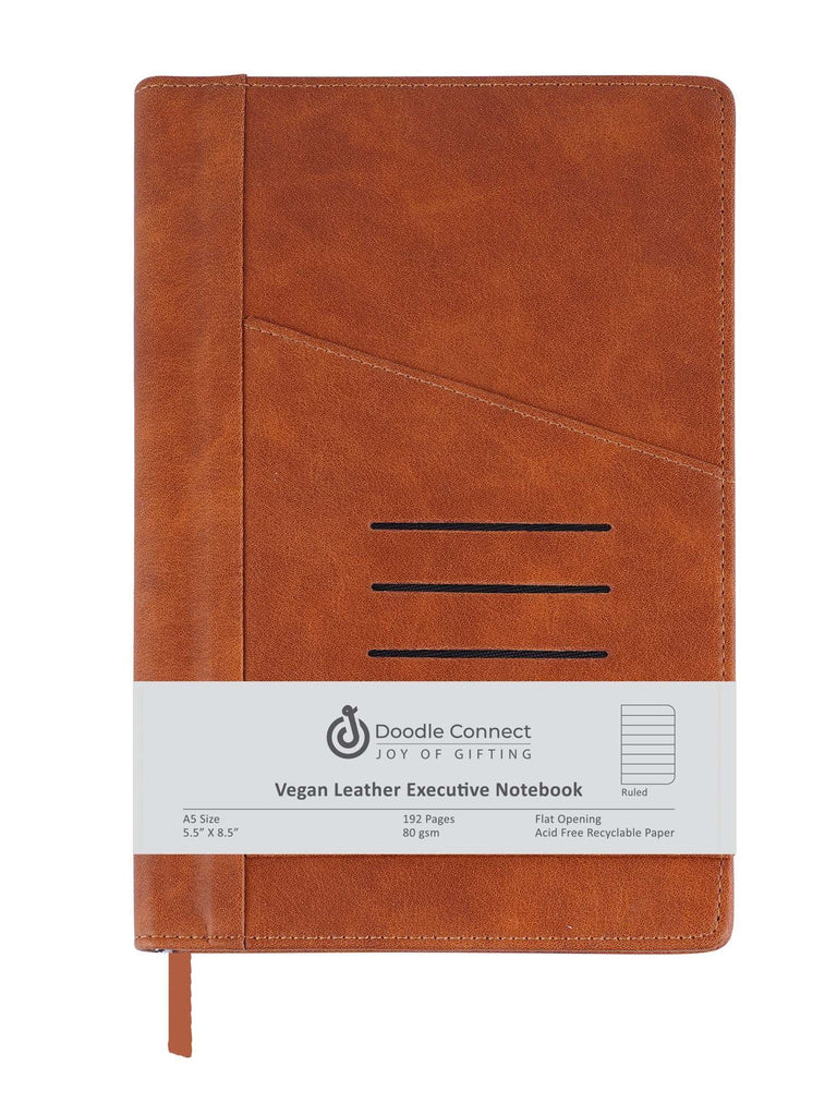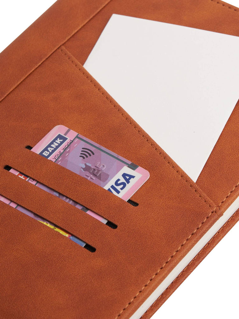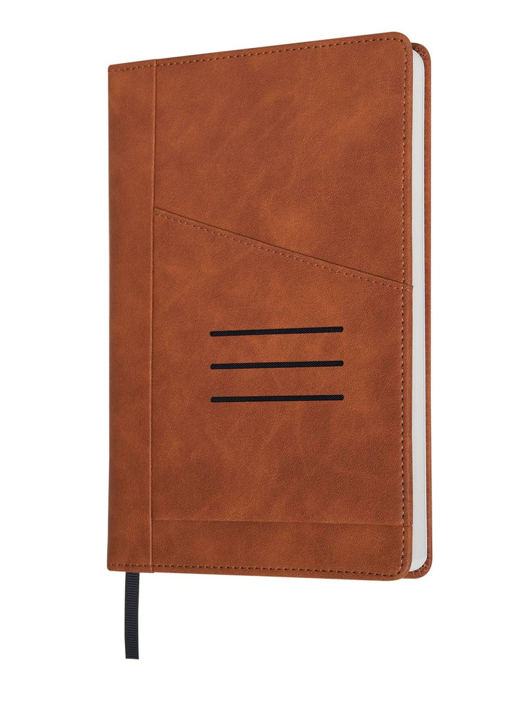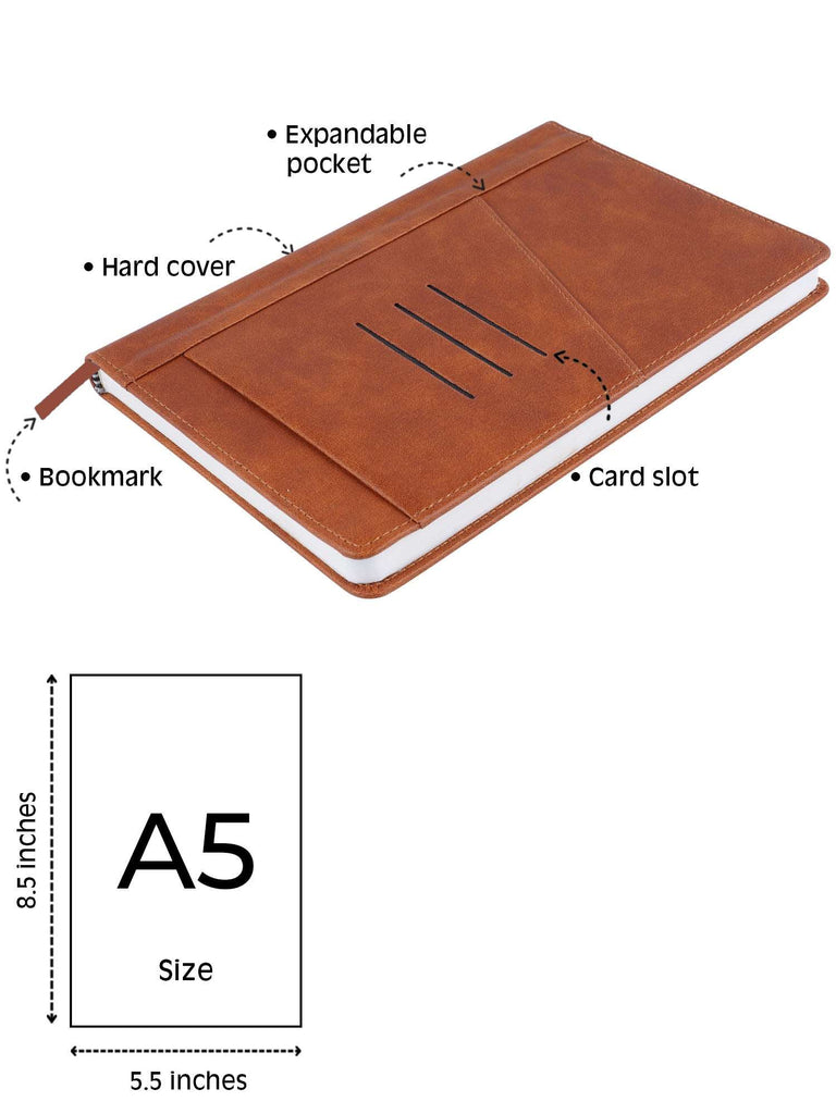 The Graham A5 Notebook: Elegance Meets Organization in Hardbound Faux Leather" - Tailor-made for professionals who prioritize both style and function, this A5 (5.5" x 8.5") faux leather notebook embodies sophistication. Crafted from premium faux leather for a sleek look, it features a cross pocket and card holder for added functionality. Its 192 pages include health and organization tips to enhance your daily productivity, while the 80 gsm paper ensures a superior writing experience. Elevate your work essentials with the refined and practical Graham Hardbound Faux Leather Notebook.