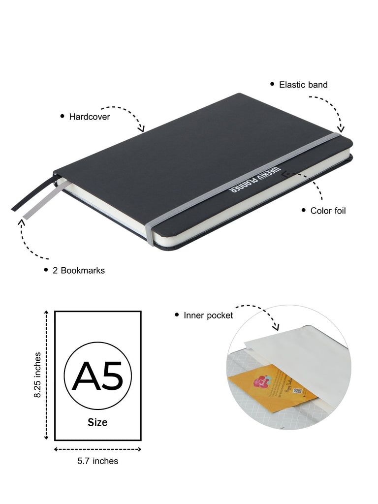- A5 LINEN TEXTURE STURDY HARD COVER : The Plan-it-Out Weekly Planner is A5 (5.7” x 8.25”) linen texture sturdy hard cover, making it durable and long lasting.