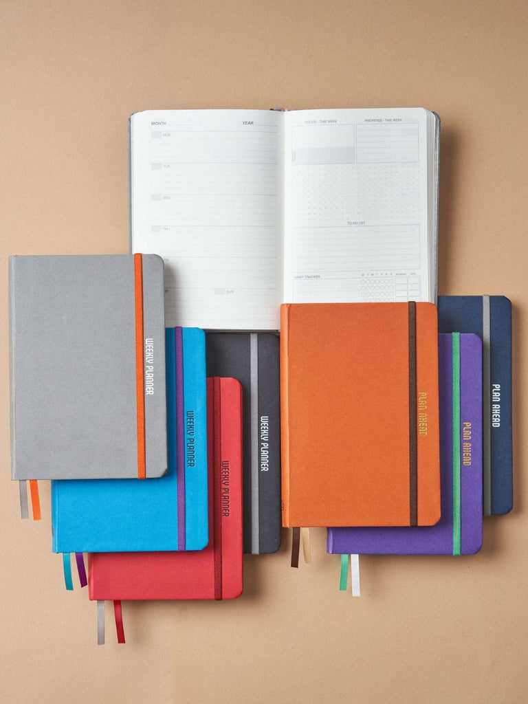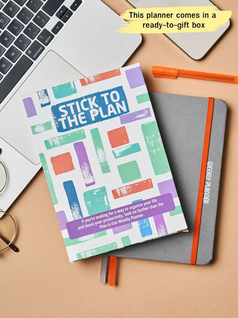 - WEEKLY PLANNER COMES WITH : The Plan-it-out weekly planner comes with an elastic band, inner pocket for your notes, and two colorful ribbon bookmarks.