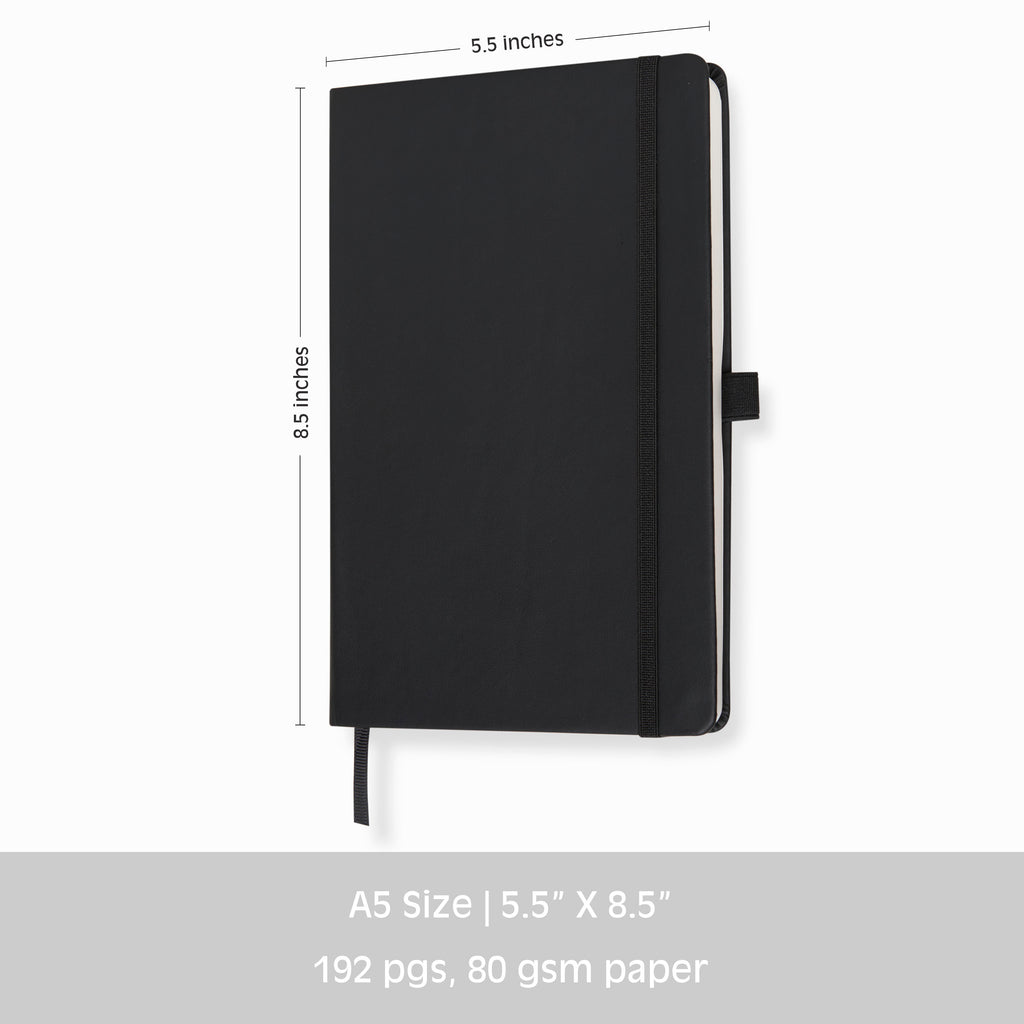 • PU Leather Hardcover: A5 Hardbound Vegan Leather Executive Notebook with Pen Loop, inner expandable pocket and Elastic Band. PU leather is durable and water resistant so even if droplets accidentally splash on the notebook cover, there is no need to worry. Pro Series Notebooks come in various colours to suit your aesthetics.