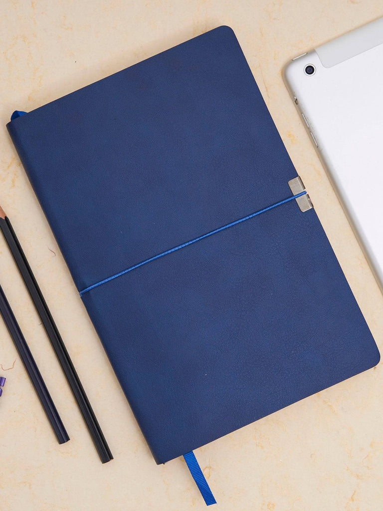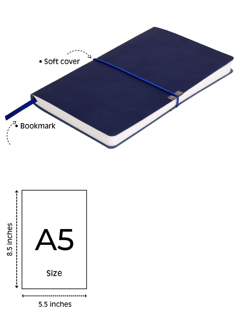 "The Windsor Executive A5 PU Leather Softbound Diary is the ideal companion for professionals, students, or anyone who values a stylish and functional notebook. Its A5 softbound cover, made of vegan leather, exudes elegance and durability. The metal accessory and elastic wrap closure gives it a stylish look. Measuring 5.5"" x 8.5"", this diary is perfectly sized for your on-the-go needs. The 192 pages of acid-free recyclable paper offer a smooth writing surface and ensure that your notes or thoughts will be preserved for years to come. The lay-flat binding allows for easy one-handed note-taking, while the ribbon bookmark adds a touch of practicality. Experience the perfect combination of style and functionality with the Windsor Executive A5 PU Leather Softbound Diary.