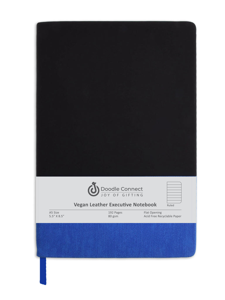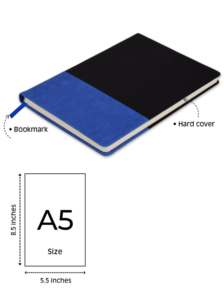 - [STYLISH AND PROFESSIONAL HARDCOVER NOTEBOOK ]Classic style with durable fauxleather hard cover in black and blue. Sleek and professional this is a perfect journal for work, office, business meetings, notes,journal writing
