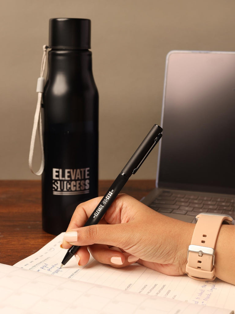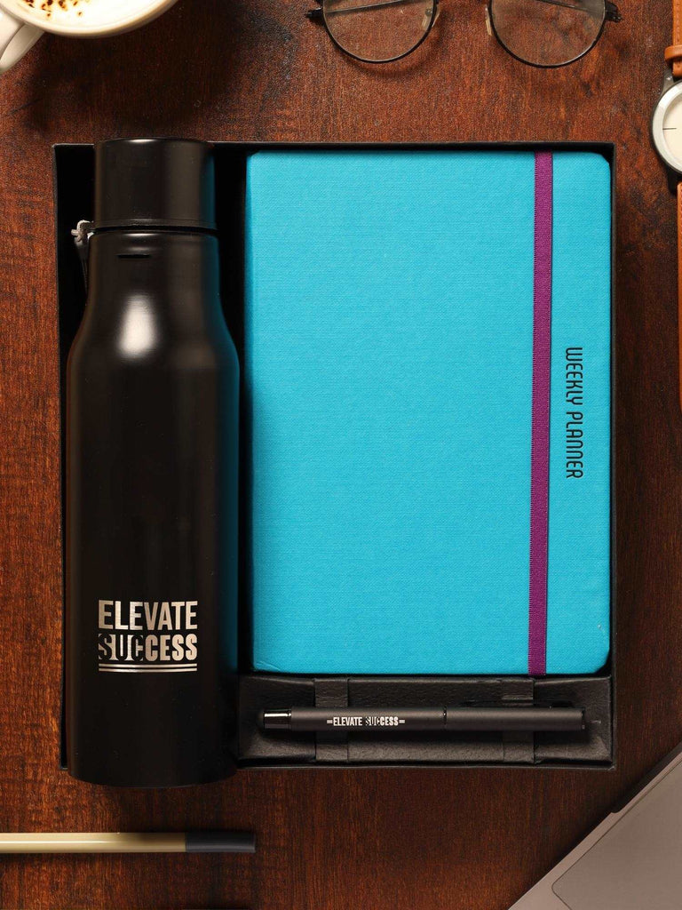 The Elevated Essentials Executive Welcome Kit is an impeccable addition to any corporate onboarding kit for new employees or as a company welcome kit. This tailored gift set caters to new hire welcome kit essentials, blending functionality and sophistication. Comprising a weekly planner, an executive-style pen, and a metal water bottle, it serves as the perfect joining kit for employees.