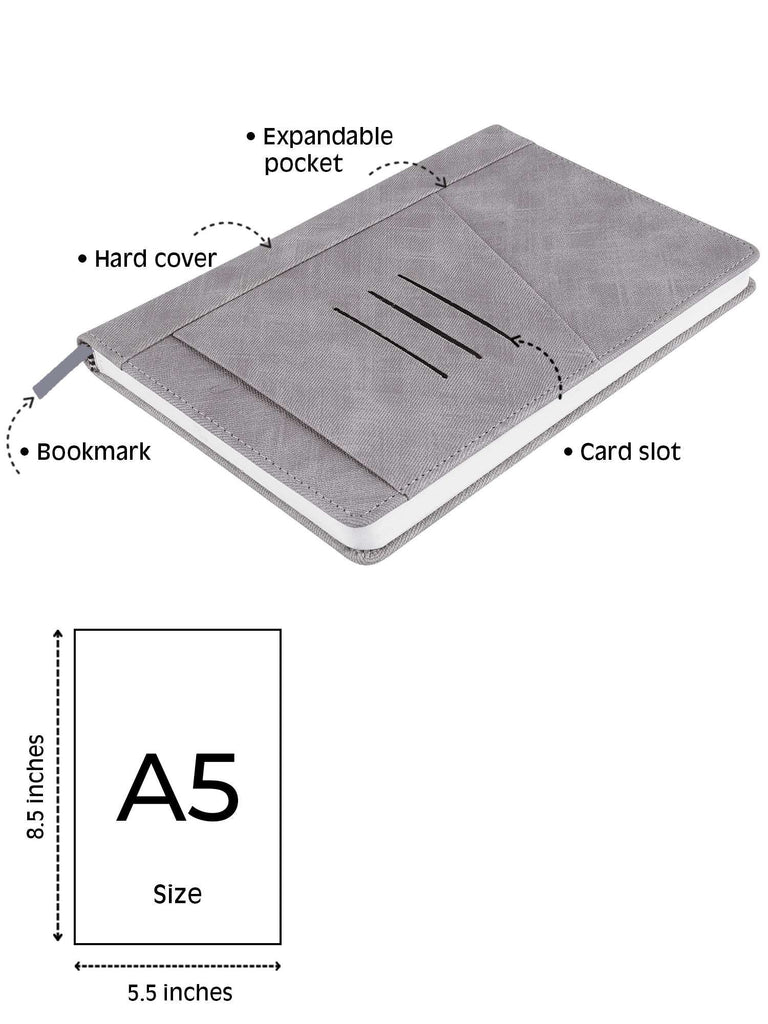 • [A5 SIZE] SIZED FOR SUCCESS: Marvel at the capacity of your perfectly-sized writing journal!This ruled notebook gives you ample space for taking down notes. It measures 5.5 x 8.5 in, your tasteful travel notebook fits comfortably inyour hands.