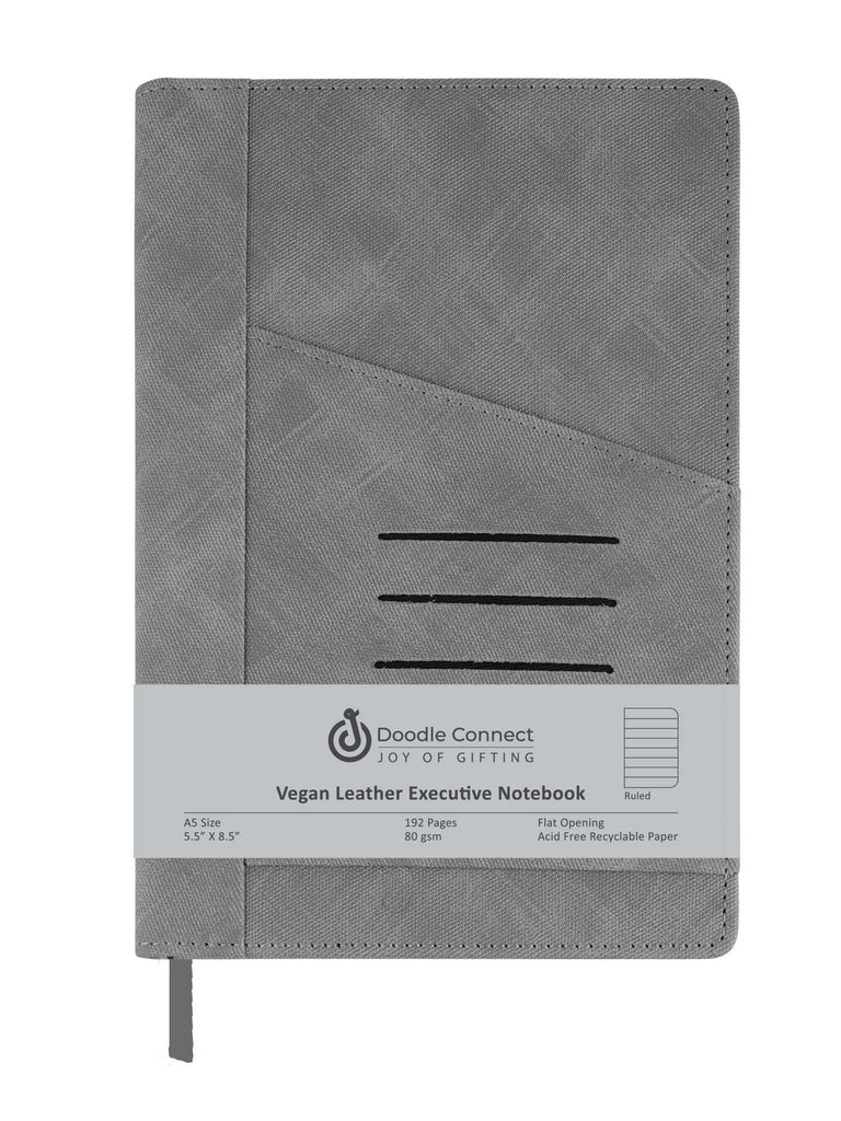 Graham - A5 Notebook: Hardbound with Faux Leather - Grey